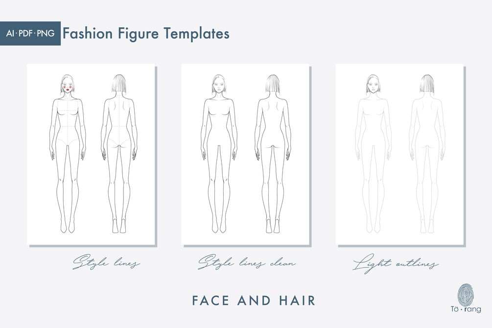 Female Fashion Figure Templates - Front and Back Views